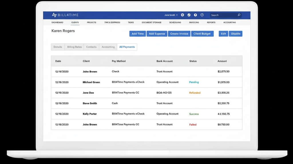 After signing in through the BillForTime login, firms can see all payment details on one simple page. This includes who made the payment, how it was paid, the payment status, and which bank account received the money. Any processing fees are also clearly shown.